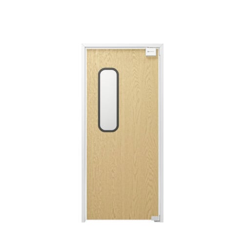 Our Rustic Wood Grain Hybrid FRP Double-Acting Traffic Doors are ideal for facilities requiring a slim, durable, and versatile door with a realistic wood grain FRP door face. Their lightweight construction and smooth double-acting gravity pivot hinge ensure reliability in busy environments.